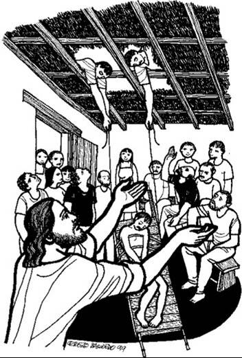 1. PRESENTACIÓN DEL TEMA La enfermedad es un mal. Por eso Jesús estaba siempre dispuesto a atender a los enfermos, tan despreciados entonces. Y ellos se acercaban a Jesús con toda confianza. Sabían que él los recibía con amabilidad, con comprensión, dispuesto siempre a ayudar, si es que tenían fe en él. Todos nosotros hemos sentido también la angustia de la enfermedad. Sabemos que es cosa fregada. Se gasta harta plata, a veces de balde. Y se sufre mucho. Muchas veces nuestra devoción al Señor o a los santos espera que ellos nos alcancen la salud. Pero no hay que esperar la salud de una manera pasiva. O sólo con rezos. Es cierto que Jesús puede hacer un milagro. Pero a él no le gusta hacer milagros a gente irresponsable. Quiere que pongamos los medios que están de nuestra parte. Y sobre todo que seamos solidarios y sanos, de forma que evitemos lo más posible las enfermedades. La actitud de Jesús nos enseña a preocuparnos con cariño de los enfermos. Él se acercaba solícito a ellos, y cuando podía los curaba con los métodos que había en su época. Nosotros tenemos que imitar su cercanía, su comprensión y su dedicación, según los medios que hay en nuestro tiempo. Sin despreciar la ciencia de los doctores, pero sin dejar tampoco la medicina popular que heredamos de nuestros antepasados. Jesús, además, no se contenta sólo con curar el cuerpo físico, sino a la persona entera. Por eso nosotros no podemos contentarnos con la salud física no más. Nuestra lucha es por conseguir personas sanas en todos los sentidos, material y espiritualmente, como personas, como familias y como comunidades. A lo que nunca recurrió Jesús fue a la brujería o a la magia. Cuidémonos nosotros de estas malas creencias, que tanto daño nos traen, pues llenan el corazón de odio y son causa de irresponsabilidades, calumnias y enemistades. 2. ORACIÓN INICIAL Recemos la oración que enseñó Jesús: Padre nuestro 3. LECTURA DEL EVANGELIO Marcos 2, 2-12: Curación del paralítico. 4. DIÁLOGO COMUNITARIO Ver: a) Que alguien cuente a su modo el Evangelio que acabamos de oír. Si es necesario, se puede leer otra vez. b) ¿Cuáles son las enfermedades que más hacen sufrir a nuestra gente? c) ¿Qué actitudes tomamos los jóvenes ante los niños y los ancianos enfermos de nuestra zona? Pensar: a) ¿Por qué debemos cuidar de nuestra salud? b) ¿Están los hospitales y las medicinas al alcance de nosotros? ¿Por qué será así? c) ¿Qué ganamos cuando descuidamos nuestra salud o cuando nos emborrachamos o drogamos? Actuar: a) ¿Cómo podemos luchar para que mejore la salud de nosotros y de nuestra gente? b) ¿Qué podemos hacer cuando visitamos a un anciano enfermo? Proponer visitar a alguno en concreto. c) ¿Podríamos organizar huertos de verduras, tan necesarias para la salud? d) ¿Podríamos organizar un botiquín comunal? ¿Cómo funcionaría? 5 DINÁMICA Representar cómicamente el trato que nos dan en los hospitales y centros de salud. 6. ORACIÓN COMUNITARIA · Creemos que Dios quiere que luchemos contra las enfermedades. · Sabemos que las enfermedades no son un castigo de Dios. · Creemos que debe unirse la medicina popular y la medicina de los doctores. · Perdón, Señor, por no cuidar debidamente nuestra salud. · Perdón porque a veces caemos en la tentación escapista de las drogas. · Perdón por creer a veces que las enfermedades son castigo de Dios. · Gracias por las personas que nos ayudan a curar nuestras enfermedades. · Gracias por las medicinas naturales que hay en nuestros campos. · Gracias por algunos adelantos modernos de la medicina. 7. EVALUACIÓN ¿Que problemas hemos encontrado hoy en la reunión? ¿Cuál es la idea que más nos ha gustado? 8. CANTO DE DESPEDIDA