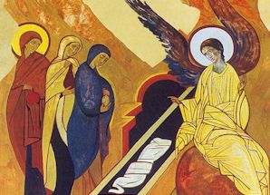 Id a anunciar a Sión: recibe el anuncio de la alegría: Cristo ha resucitado. Alégrate, danza, exulta, Jerusalén, y contempla a Cristo y Rey que sale del sepulcro como un Esposo.