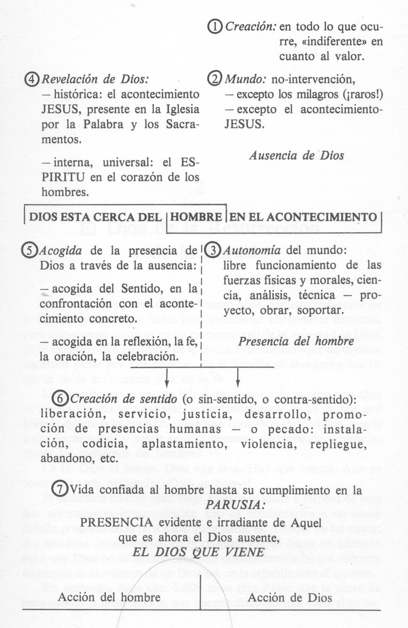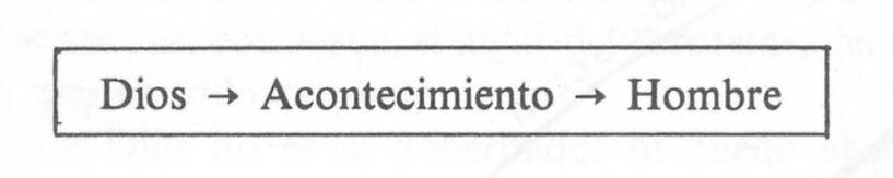 He ahí, pues, los tres términos que se trata de organizar para comprender y dominar nuestra experiencia de hombres: Dios, el Hombre y el Acontecimiento. En la organización de estos tres términos se explicita mi sentido de Dios en su relación con el mundo y, en consecuencia, también mi sentido del mundo y, sobre todo, de mí mismo.