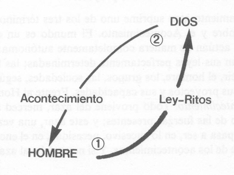 El sistema religioso ha sido suficientemente explicado más arriba. Ahora hay que introducir en él el nuevo término, el Acontecimiento. El religioso cree poder influir en Dios mediante las obras de la Ley o la celebración de un rito; es lógico que espere verle reaccionar en favor del hombre a través del Acontecimiento.