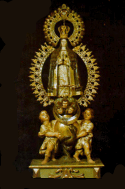 Se trata de una talla del siglo XVII (Escuela de Gregorio Hernández) ante la cual tiene lugar - cada cierto número de años - la "refrendación" (conmemoracion) del gran voto que, VILLALPANDO y las doce Villas de su jurisdicción....hicieron en día 1º de Noviembre de 1466... "juramentándose de que tanto sus Regidores como todo su vecindario defendería, en cualquier circunstancia y aun a costa de su sangre y de sus vidas..." que la Stma.Virgen María fué concebida sin mancha y permaneció Virgen e Inmaculada antes, en y después del nacimiento de su Divino Hijo Jesús..." Esto, dicho más o menos, en castellano de la época y con la más grande solemnidad, vino a ser el gran voto con que VILLALPANDO y su Tierra se convirtieron en EL PRIMER PUEBLO DE TODO EL MUNDO en que se anticipaba lo que, en el año 1854 S.S. el Papa Pío IX promulgara como "Dogma de la Inmaculada Concepción de María"... |