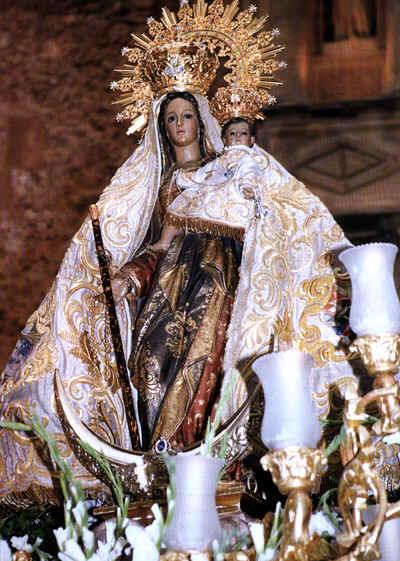 La devoción en Hellín por Ntra. Sra. del Rosario arranca con la Reconquista de la ciudad a manos de las tropas castellanas en 1266. El ejército cristiano llegó acompañado de frailes dominicos, los cuales venían difundiendo el culto a esta advocación mariana por todos los territorios levantinos ganados a los musulmanes. Pronto fué erigido un templo en su honor y, a finales del siglo XVI, ya consta la existencia de una importante cofradía bajo su patronazgo que aún hoy sigue en activo.
