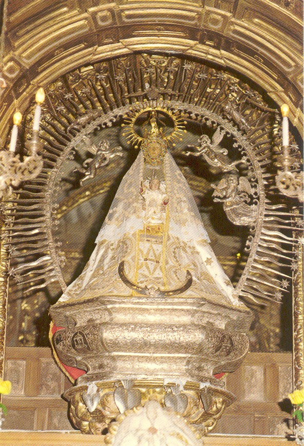 Esta imagen, vestida, preside el Santuario de su nombre, en el pueblo llamado así en su honor.