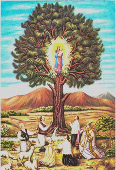 Este cuadro corresponde también a la Virgen del Pino, pero en representación pictórica, del milagro de las apariciones en lo alto de un Pino...(origen de la devoción popular y del nombre de la imagen)