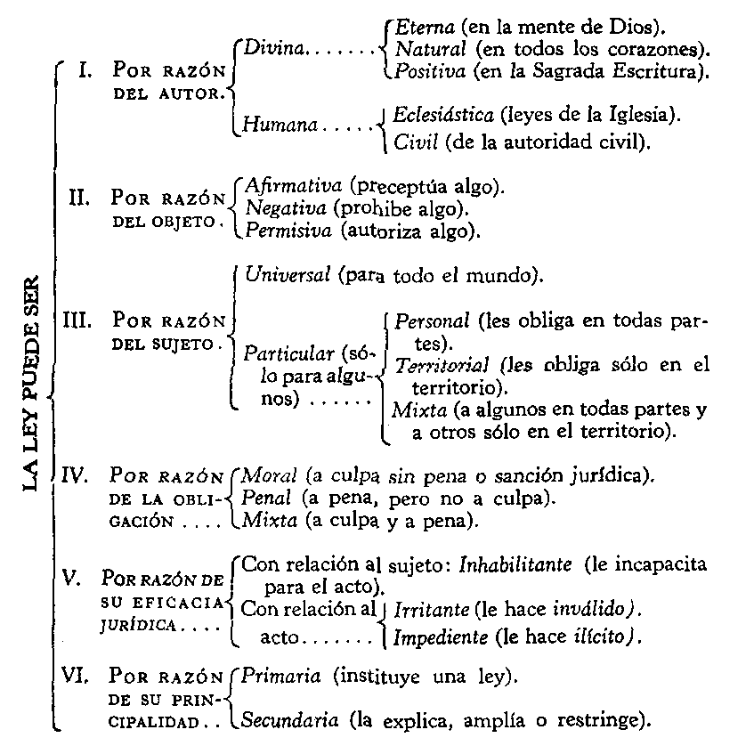 107. 3. División. Recogemos en esquemática visión de conjunto las principales clases de leyes que interesan en teología moral, y que iremos examinando en sus lugares correspondientes: