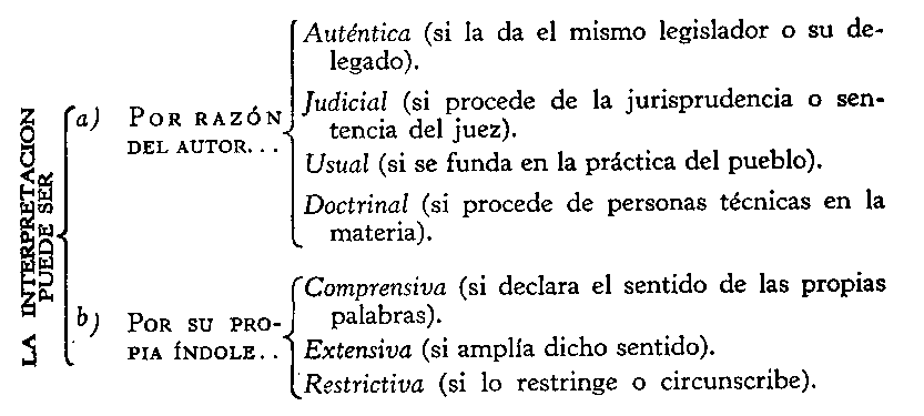 2. División. El siguiente cuadro esquemático expresa con claridad y precisión las distintas clases de interpretaciones relativas a la ley.