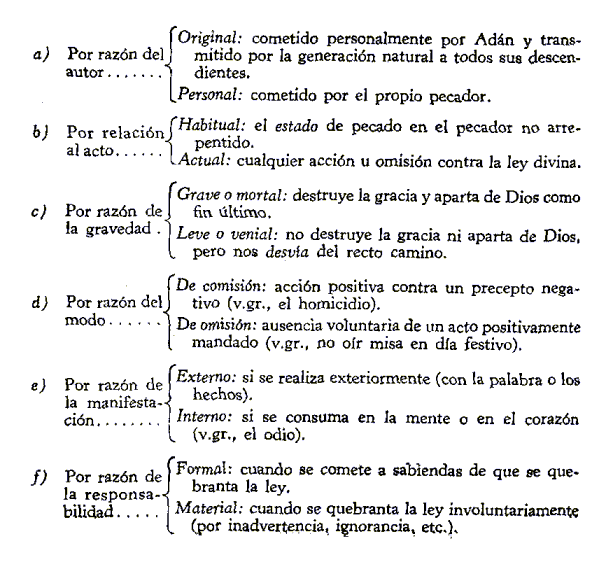 | I. | El pecado en general | 3. | Distinción específica de los pecados. |