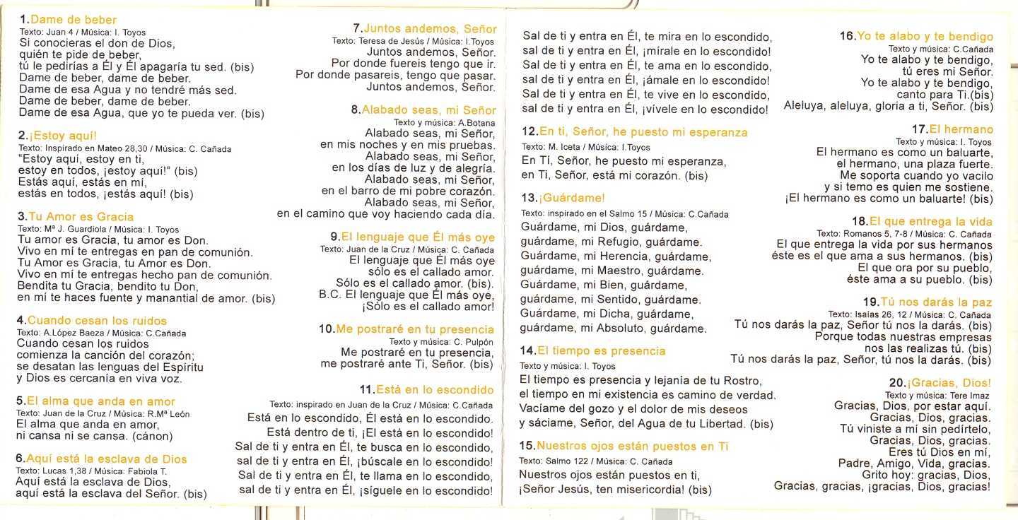 Armonia y Plegaria 02: 1 dame de beber.mp3 - 2 estoy aqui.mp3 - 3 tu amor es gracia.mp3 - 4 cuando cesan los ruidos.mp3 - 5 el alma que anda en amor.mp3 - 6 aqui esta la esdava de dios.mp3 - 7 juntos andemos.mp3 - 8 alabado seas mi señor.mp3 - 9 el lenguaje que el mas oye.mp3 . 10 me postrare en tu presenda.mp3 - 11 esta en lo esondido.mp3 - 12 en ti señor he puesto mi esperanza.mp3 - 13 guardame.mp3 - 14 el tiempo es presencia.mp3 - 15 nuestros ojos estan puestos en ti.mp3 - 16 yo te alabo y te bendigo.mp3 - 17 el hermano.mp3 - 18 el que entrega la vida.mp3 - 19 tu nos daras la paz.mp3 - 20 gracias dios.mp3 - Escanear0046.jpg - Escanear0047.jpg Armonia y Plegaria 03: 1 que buscais.mp3 - 2 todo es presenda.mp3 - 3 tanto amo dios al mundo.mp3 - 4 dejalo todo fuera.mp3 - 5 que bien se yo la fonte.mp3 - 6 aqui esta mi vida.mp3 - 7 ayudame a mirar con amor.mp3 - 8 a su tiempo.mp3 - 9 purifica mis deseos.mp3 - 10 en el silencio.mp3 - 11 en lo profundo de mi corazon.mp3 - 12 oh llama de amor viva.mp3 - 13 queremos seguirte.mp3 - 14 ofrenda.mp3 - 15 restauranos.mp3 - 16 manten mi corazon.mp3 - 17 tened la paciencia de jesus.mp3 - 18 como el que sirve.mp3 - 19 se hizo humanidad.mp3 - 20 en lo grande y lo pequeño.mp3 - Escanear0042.jpg Asi Te Necesito: 0 introduccion.mp3 - 1 laudate dominum.mp3 - 2 vengo aqui mi señor.mp3 - 3 en la noche oscura.mp3 - 4 siento tu Ilamada.mp3 - 5 lampara es tu palabra.mp3 - 6 aleluya.mp3 - 7 en lo profundo de mi corazon.mp3 - 8 oh llama de amor viva.mp3 - 9 compartir.mp3 - 10 creo en ti.mp3 - 11 tu eres digno.mp3 - 12 asi te necesito.mp3 - 13 danos entrañas de misericordia.mp3 - 14 al atardecer de la vida.mp3 - 15 alabado seas mi señor.mp3 - 16 dia tras dia.mp3 - 17 a su tempo.mp3 - asi te necesito.jpg Canciones de un Grupo Got: 01a.mp3 - 02a.mp3 - 03.mp3 - 04.mp3 - 05.mp3 - 06.mp3 - 08.mp3 - 09.mp3 - 10.mp3 - 11.mp3 - 12.mp3 - 13.mp3 - 14.mp3 - 15.mp3 - 16.mp3 - 17.mp3 - 18.mp3 - 19.mp3 - 20.mp3 - 21.mp3 - 22.mp3 - 23.mp3 - 24.mp3 - 25.mp3 - 26.mp3 - 27.mp3 Canto Interior 01: 1 cuando cesan los ruidos.mp3 - 2 dejalo todo fuera.mp3 - 3 tu estas aqui.mp3 - 4 que bien se yo la fonte.mp3 - 5 hagase en mi segun tu palabra.mp3 - 6 señor que seas quien viva en mi.mp3 - 7 busca el silencio.mp3 - 8 el lenguaje que el mas oye.mp3 - 9 el mirar de dios es amar.mp3 - 10 ayudame a mirar con amor.mp3 - 11 ven oh espiritu.mp3 - 12 me postrare en tu presenda.mp3 - 13 aqui esta la esclava del señor.mp3 - 14 yo te alabo y te bendigo.mp3 - Escanear0029.jpg Canto Interior 02: 1 danos entrañas de misericordia.mp3 - 2 asi te necesito.mp3 - 3 se hizo humanidad.mp3 - 4 tened la paciencia de jesus.mp3 - 5 como el que sirve.mp3 - 6 ofrenda.mp3 - 7 dejame ver solo en tu luz.mp3 - 8 el amor.mp3 - 9 restauranos.mp3 - 10 tu nos daras la paz.mp3 - 11 dame de beber.mp3 - 12 estoy aqui.mp3 - 13 el que entrega la vida.mp3 - 14 mirad como se aman.mp3 - Escanear0026.jpg Como el que Sirve: 0 introduccion.mp3 - 1 estoy entre vosotros.mp3 - 2 se hizo humanidad.mp3 - 3 tened la paciencia de jesus.mp3 - 4 benditos los pobres.mp3 - 5 el hermano.mp3 - 6 aqui esta mi vida.mp3 - 7 queremos seguirte.mp3 - 8 nuestros ojos estan puestos en ti.mp3 - 9 amen a tu palabra.mp3 - 10 señor aqui esta nuestro pan.mp3 - 11 hacer brotar.mp3 - 21 como el que sirve.mp3 - 22 se hizo humanidad.mp3 - 23 tened la paciencia de jesus.mp3 - 24 benditos los pobres.mp3 - 25 el hermano.mp3 - 26 aqui esta mi vida.mp3 - 27 queremos seguirte.mp3 - 28 nuestros ojos estan puestos en ti.mp3 - 29 amen.mp3 - 30 ofrenda.mp3 - 31 hacer brotar.mp3 - como el que sirve 01.jpg - como el que sirve 02.jpg Cuando cesan los ruidos (ensayo): 0 introduccion mp3 - 1 cuando cesan los ruidos.mp3 - 2 busca el silencio.mp3 - 3 dejalo todo fuera.mp3 - 4 le llevare al desierto.mp3 - 5a no necesito verte para verte.mp3 - 5b no necesito verte para verte.mp3 - 5c no necesito verte para verte.mp3 - 6 en ti señor he puesto mi esperanza.mp3 - 7 tu estas aqui.mp3 - 8 el lenguaje que el mas oye.mp3 - 9 el mirar de dios es amar.mp3 - 10 el alma que anda en amor.mp3 - 11 que bien se yo la fonte.mp3 - 12 señor que seas tu quien viva en mi.mp3 - 13 ayudame a mirar con amor.mp3 - 14 juntos andemos señor.mp3 - 15 hagase en mi segun tu palabra.mp3 - cuando cesan 01.jpg - cuando cesan 02.jpg Déjalo Todo Fuera: 0 introducdon.mp3 - 01a.mp3 - 02a.mp3 - 03.mp3 - 04.mp3 - 05.mp3 - 06.mp3 - 07.mp3 - 08.mp3 - 09.mp3 - 10.mp3 - 11.mp3 - 12.mp3 - 13.mp3 - 14.mp3 - 15.mp3 - 16.mp3 - 17.mp3 - 18.mp3 - 19.mp3 - 20.mp3 - dejalo todo.jpg Dentro: 1 yo estoy en medio de ti.mp3 - 2 con amor eterno te amo.mp3 - 3 asi soy yo.mp3 - 4 os dare un corazon nuevo.mp3 - 5 el gorrion ha encontrado una casa.mp3 - 6 mientras tu dormias.mp3 - 7 venid benditos de mi padre.mp3 - 8 en el silencio toca mi voz.mp3 - 9 tu espiritu me guie.mp3 - 10 dios mio restauranos.mp3 - 11 graba en mi adentro.mp3 - 12 señor en ti confio.mp3 - 13 suplica.mp3 - 14 alabo al señor.mp3 - 15 bendicenos dios berakah.mp3 - 16 en el altar del mundo.mp3 - 17 padre.mp3 - 18 nuestro dios merece una alabanza armoniosa.mp3 - 19 bendito seas hoy aqui.mp3 - 20 hagase en nosotras segun nuestra fe mp3 - 21 al fin de este dia.mp3 - 22 aleluya mp3 - 23 amor es tu nombre.mp3 - 24 servir es amar.mp3 - 25 me tenia en sus manos.mp3 - 26 el amor que damos.mp3 - 27 el amor.mp3 - 28 clarividencia.mp3 - 29 como jesus.mp3 - 30 en tus manos hoy ponemos.mp3 - 31 acoger nuestra realidad.mp3 - 32 echa a andar.mp3 - Escanear0062.jpg Gracias Dios (ensayo): 1 ven oh espiritu santo.mp3 - 2 purifica mis deseos.mp3 - 3 me prostrare en tu presencia.mp3 - 4 que venga a mi.mp3 - 5 esta en lo escondido.mp3 - 6 aqui esta.mp3 - 7 guardame.mp3 - 8 manten mi corazon.mp3 - 9 yo te alabo y te bendigo.mp3 - 9 yo te alabo y te bendigo.mp3 - 11 ven oh espiritu santo.mp3 - 12 purifica mis deseos.mp3 - 13 me postrare en tu presencia.mp3 - 14 que venga a mi.mp3 - 15 el tiempo es presenda.mp3 - 16 esta en lo escondido.mp3 - 17 aqui esta.mp3 - 18 en el silencio.mp3