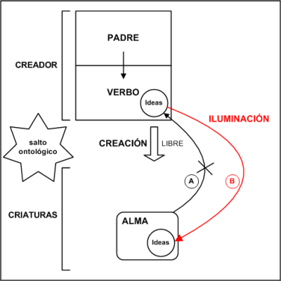 Agustín explicaba la presencia en el alma humana de esos contenidos inmutables y eternos mediante su "Teoría de la Iluminación". El siguiente cuadro presenta en forma esquemática dicha teoría. Debajo del mismo se encuentra una breve explicación.
